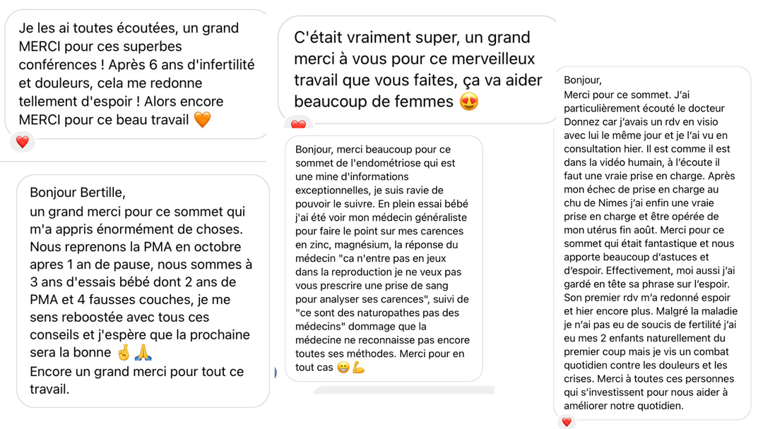 Les conférences du Sommet 2022 – Prendre soin de sa fertilité en replay illimité à vie – des informations fiables, des conseils, des astuces de la part d’experts pour préserver, optimiser et restaurer sa fertilité. 17 conférences et un PDF bonus sur ce qu’il faut savoir concernant la grossesse avec l’endométriose.